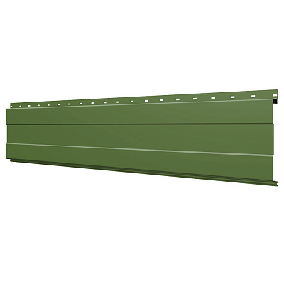 Линеарная потолочно-стеновая панель с ПОЛОСОЙ усиленная цвет RAL6002 Зеленый Лист применяется в качестве софитов для подшивы крыши, наружной и внутренней отделки потолков, стен, фронтонов фасада дома в Казахстане.